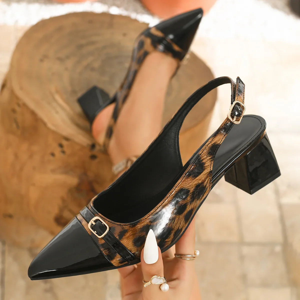 Designed with a bold leopard pattern and high-shine finish, these heels complete any look with fearless energy. A stable block heel keeps you comfortable while all eyes stay on you.